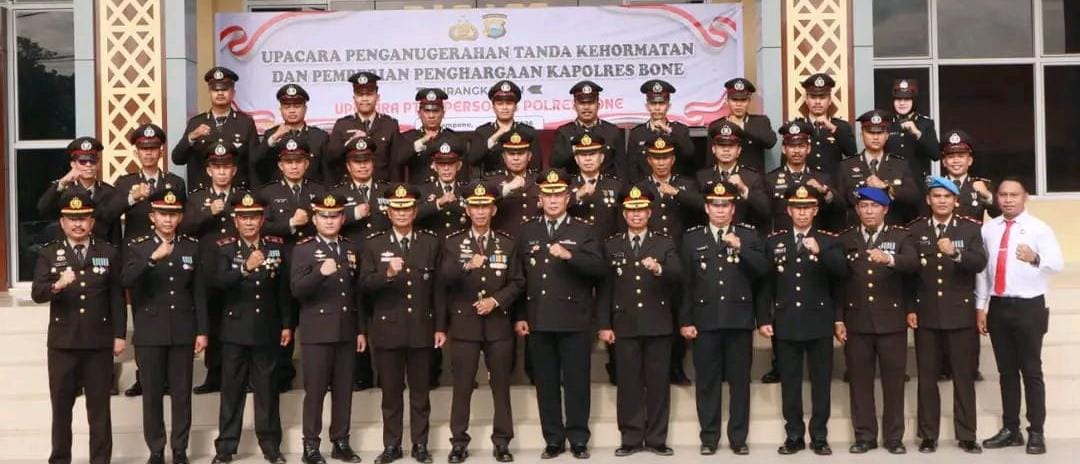 Pada kesempatan yang sama, sebanyak 43 personel Polres Bone dan Polsek jajaran juga menerima penghargaan dari Kapolres Bone atas dedikasi, integritas, serta kinerja yang telah ditunjukkan dalam pelaksanaan tugas kepolisian.