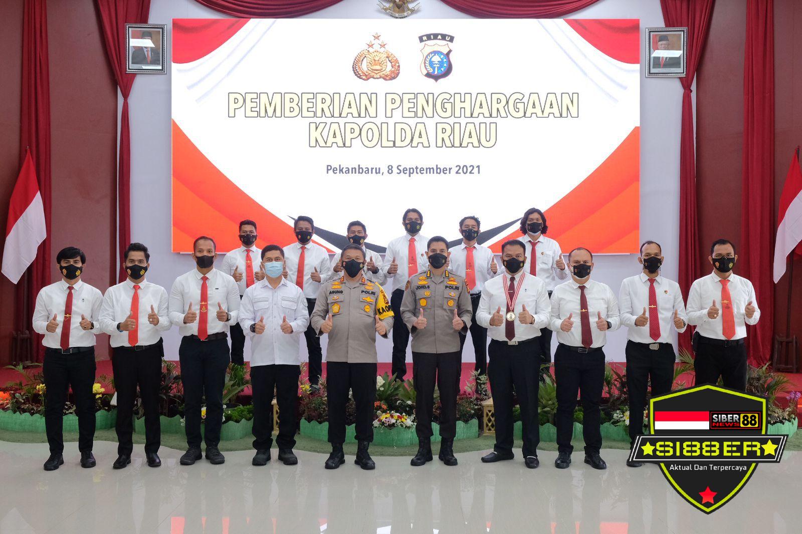 Pekanbaru, SIBER88.CO.ID_Sebanyak 41 personel Polda Riau mendapatkan penghargaan atas prestasi dalam bidang tugas operasional Kepolisian tahun 2021. Penghargaan diberikan oleh Kapolda Riau Irjen Agung Setia Imam Effendi pada acara yang digelar di aula Tribrata Polda Riau Rabu (8/9/2021).
