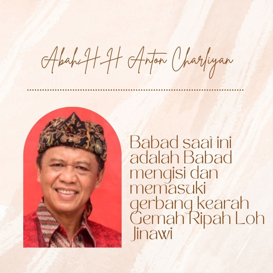 Budaya yang kental dengan sejarah dan ethika akan menjadikannya sebagai suatu catatan khusus pada zamannya atas apa yang terjadi di masa lalu, kini, dan yang akan datang . Perputaran Cakra Manggilingan yang terus bergerak, meng artikan Sunnatullah kehidupan alam dan sosial yang akan terus bergulir. Antara kehidupan yang terang menuju gelap, atau sebaliknya kehidupan gelap menuju terang. Dalam kutipannya, Abah Anton mengatakan, “Babad saat ini seyogianya harus sudah mulai bergerak menuju ke babad mengisi dan memasuki gerbang Emas Gemah Ripah Lohjinawi ”. Karena kalau membuka gerbang awal sudah dimulai sejak zaman kemerdekaan tajun 1945.