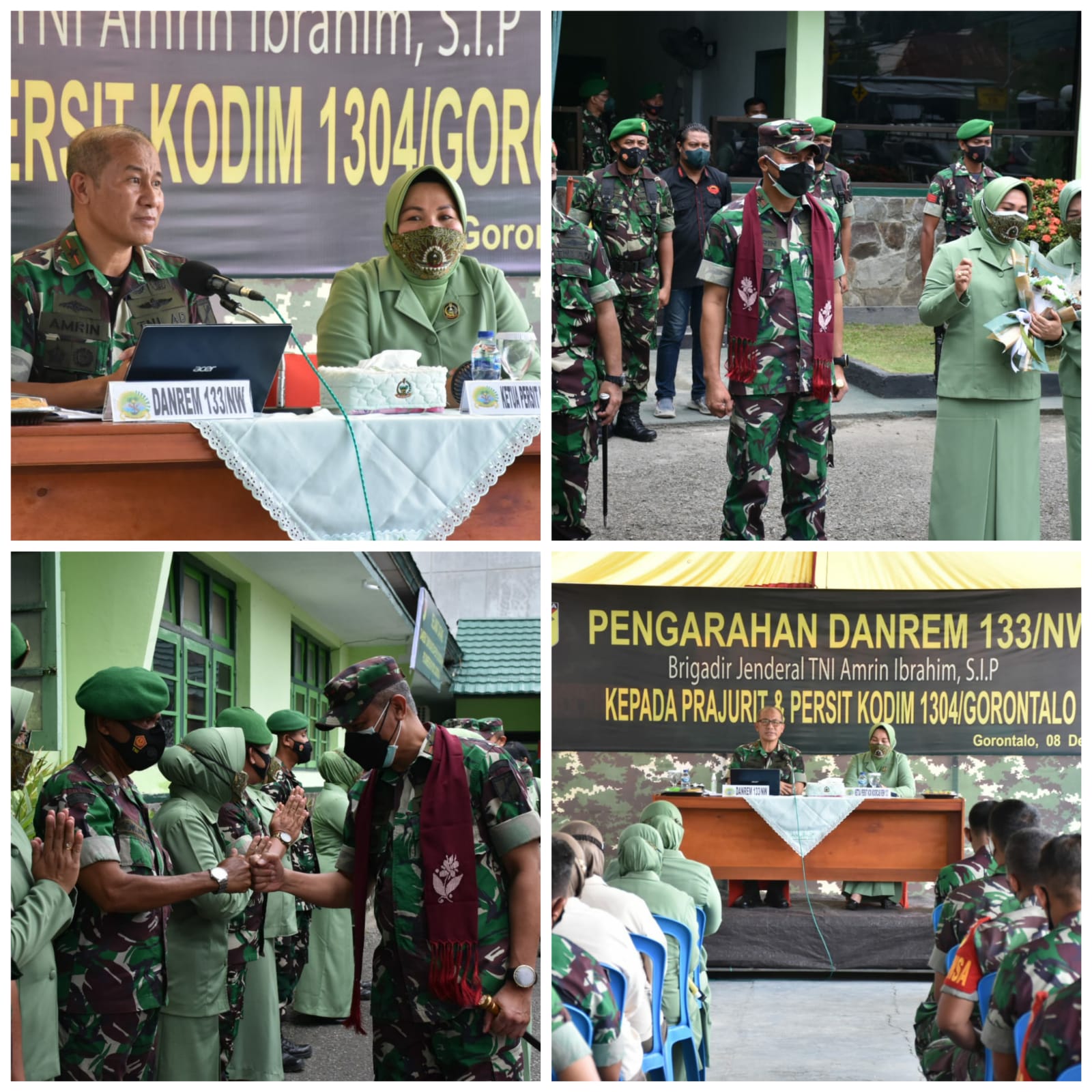 “Pada kesempatan Kunjungan Kerja tersebut, Danrem 133/Nani Wartabone Brigjen TNI Amrin Ibrahim, S.I.P. memberikan pengarahan kepada seluruh Prajurit Kodim 1304/Gorontalo di Lapangan Apel Makodim 1304/Gorontalo. Dalam arahannya Danrem 133/NW menyampaikan, agar para Prajurit untuk lebih meningkatkan disiplin, kurangi pelanggaran sekecil apapun jaga Soliditas dan Solidaritas, hindari perselisihan TNI dan Polri, TNI dan Masyarakat dengan cara melakukan kegiatan bersama yang positif, sehingga tercipta hubungan TNI, Polri dan Masyarakat yang harmonis.