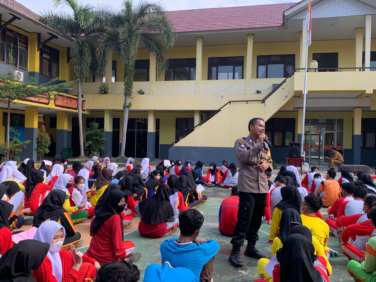 Lanjut Bripka Mirta menghimbau kepada siswa siswi agar mematuhi peraturan serta tata tertib yang ada baik di lingkungan sekolah maupun di sekitar lingkungan sekolah, juga menyampaikan