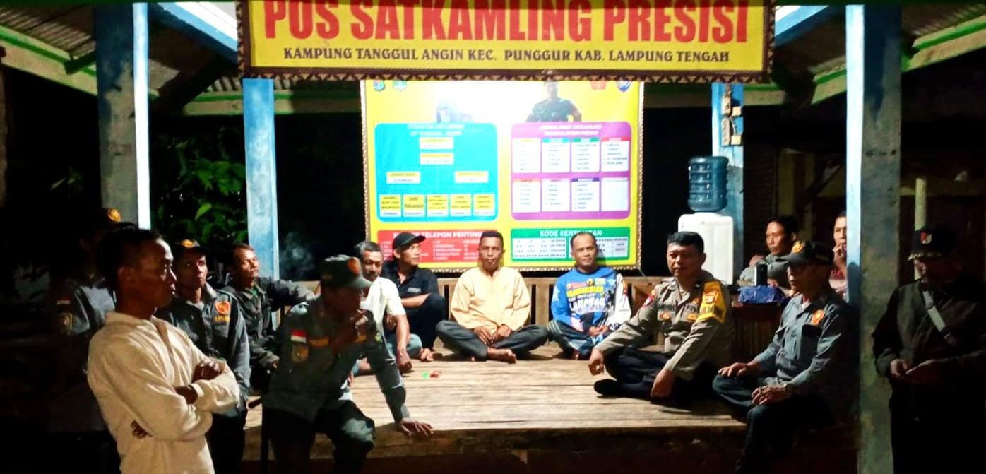 Lampung Tengah, SIBER88.CO.ID_Dalam upaya menjaga keamanan dan ketertiban masyarakat (Kamtibmas) di wilayah binaan, Bhabinkamtibmas Polsek Punggur, Polres Lampung Tengah, yakni Aipda Dendi, melaksanakan patroli sambang sekaligus melakukan pengecekan Pos Satkamling Presisi yang berada di Kampung Tanggul Angin Kecamatan Punggur Kabupaten Lampung Tengah pada Kamis malam (3/7/2025).