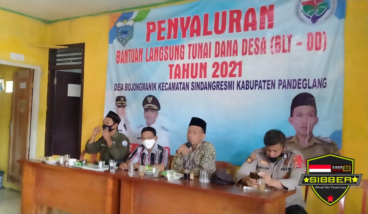 Pandeglang Banten, SIBER88.CO.ID_Anggota Polsek Munjul Polres Pandeglang menghadiri sekaligus mendampingi dan Simbolis penyaluran BLT DD untuk Desa Bojongmanik Kecamatan Sindangresmi Kabupaten Pandeglang yang bertempat di Kantor Desa Bojongmanik. Kamis (21/10/2021).