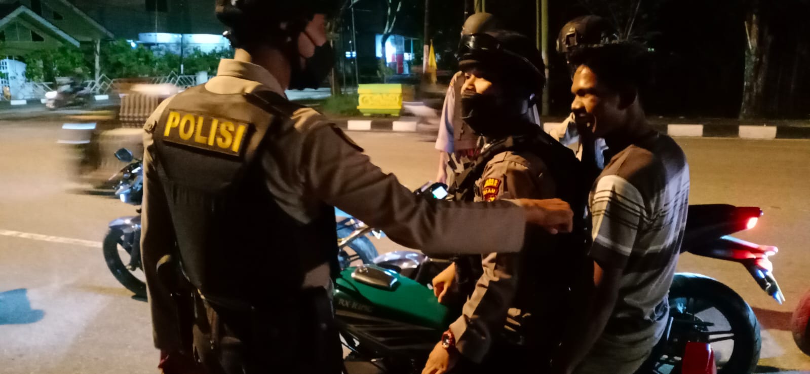 Beberapa kelompok pemuda atau remaja yang berkumpul dipinggir jalan ditengah malam ini didatangi petugas, Tim melakukan pengecekan terhadap mereka termasuk kendaraan yang mereka bawa.