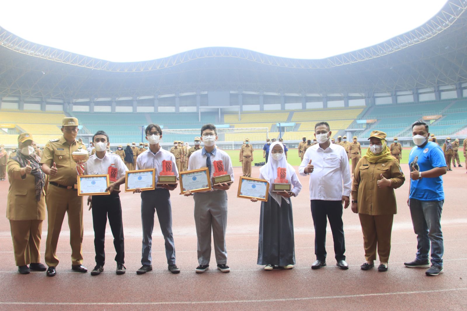 Bekasi Jabar, SIBER88.CO.ID_Pelaksanaan apel pagi di Stadion Patriot Candrabhaga Kota Bekasi bersama para Pejabat lingkup Esselon II dan III dirangkaikan dengan penyerahan beberapa penghargaan atas peraihan capaian peringkat ke 8 untuk Kota Toleransi Tingkat Nasional dan penyerahan Piala Wali Kota Bekasi untuk pemenang Stand Up Comedy Competition tingkat pelajar SMA/SMK Sederajat di Kota Bekasi yang diselenggarakan oleh Aliansi Wartawan Indonesia Bangkit (AWIB) yang bekerjasama dengan Pemkot Bekasi melalui Bagian Humas Setda Kota Bekasi.