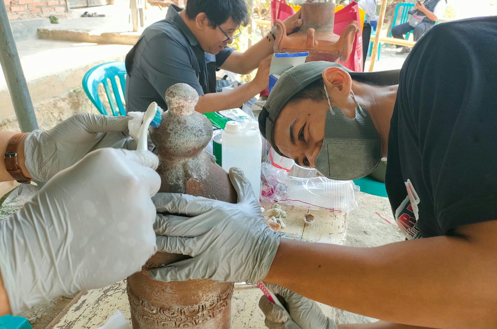 “Kita akan bersihkan dulu memolonya dari mikroorganisme dengan menggunakan bahan bahan kimia. Tujuannya agar memolo yang terbuat dari gerabah ini dapat bertahan lama,” jelas Sonny kepada media, Rabu (9/8/2023).