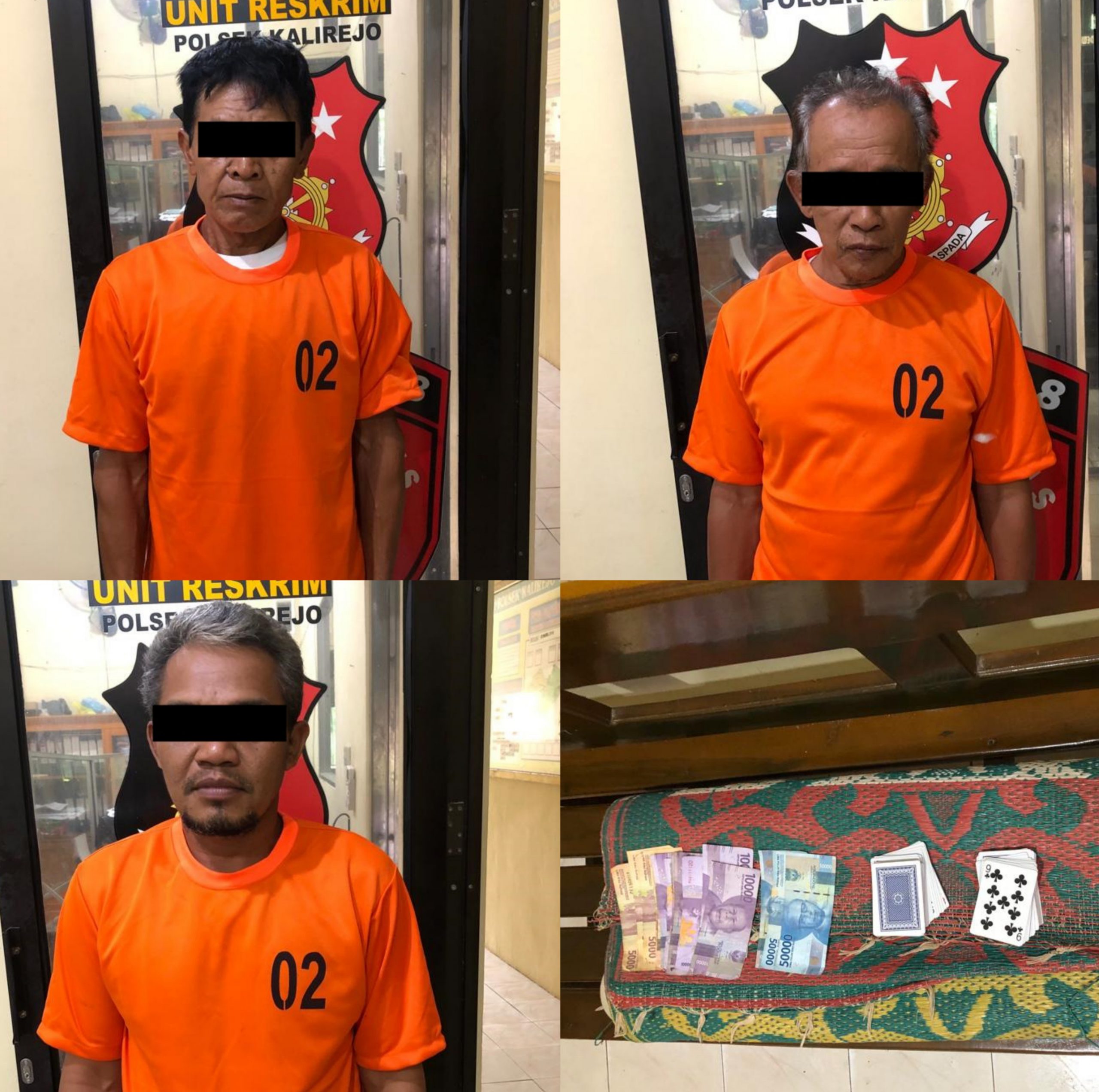 Berbekal dari laporan warga, selanjutnya anggota Reskrim Polsek Kalirejo melakukan penyelidikan dan menangkap ketiga pelaku yang sedang asik bermain judi jenis kartu remi dirumah salah satu pelaku inisial NS warga Kamp. Sendang Mulyo Kec. Sendang Agung Kab. Lampung Tengah.’’jelas Kapolsek