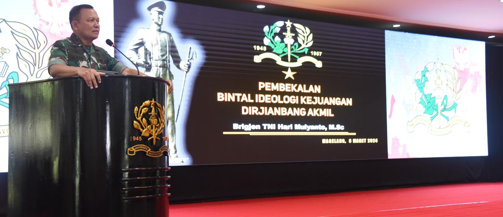 Kegiatan ini dihadiri oleh segenap organik Akmil, baik dari kalangan Militer maupun PNS, serta anggota persit dan dipandu oleh pemateri Dirjianbang Akmil,Brigjen TNI Hari Mulyanto, bertempat di Gedung Mochamad Lily Rochli Akmil Magelang, Rabu (6/3/2024).
