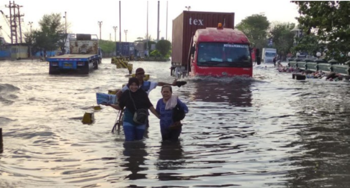 Semarang Jateng, SIBER88.CO.ID_Pelabuhan Tanjung Emas Semarang kembali tergenang banjir rob. Banjir rob kali ini merupakan banjir rob terparah usai ditambalnya tanggul yang sempat jebol beberapa waktu lalu.