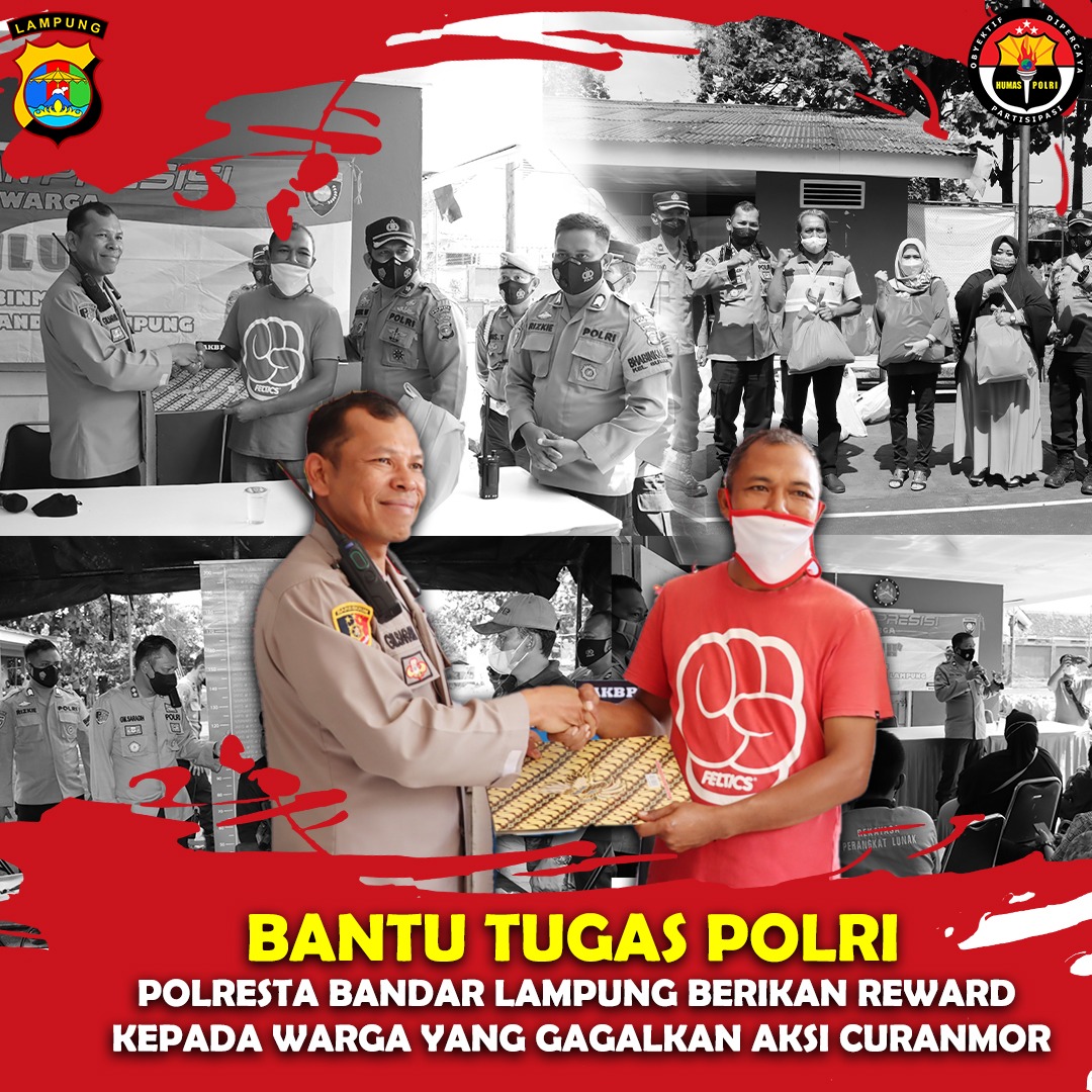 Lebih lanjut Wakapolresta menyampaikan Polresta Bandar Lampung memberikan penghargaan kepada nya yang berhasil menggagalkan Sebuah upaya pencurian kendaraan bermotor di lingkungannya. Terangnya.