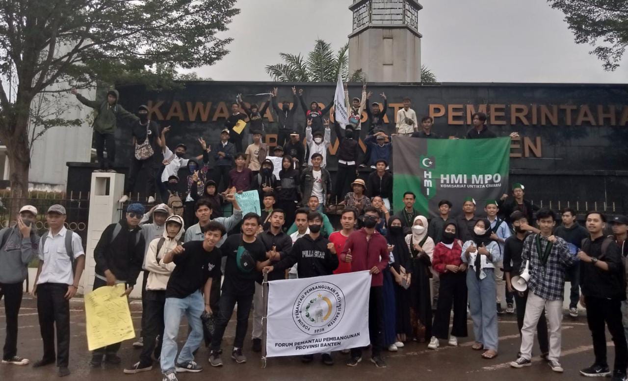 Serang Banten, SIBER88.CO.ID_Aliansi Gerakan Rakyat Menggugat yang terdiri dari beberapa organisasi mahasiswa yaitu Forum Pemantau Pembangunan Provinsi Banten (FP3B) & Front Mahasiswa Islam (FMI) melakukan aksi demontrasi di halaman Kantor DPRD Provinsi Banten, Kamis (08/9/2022).