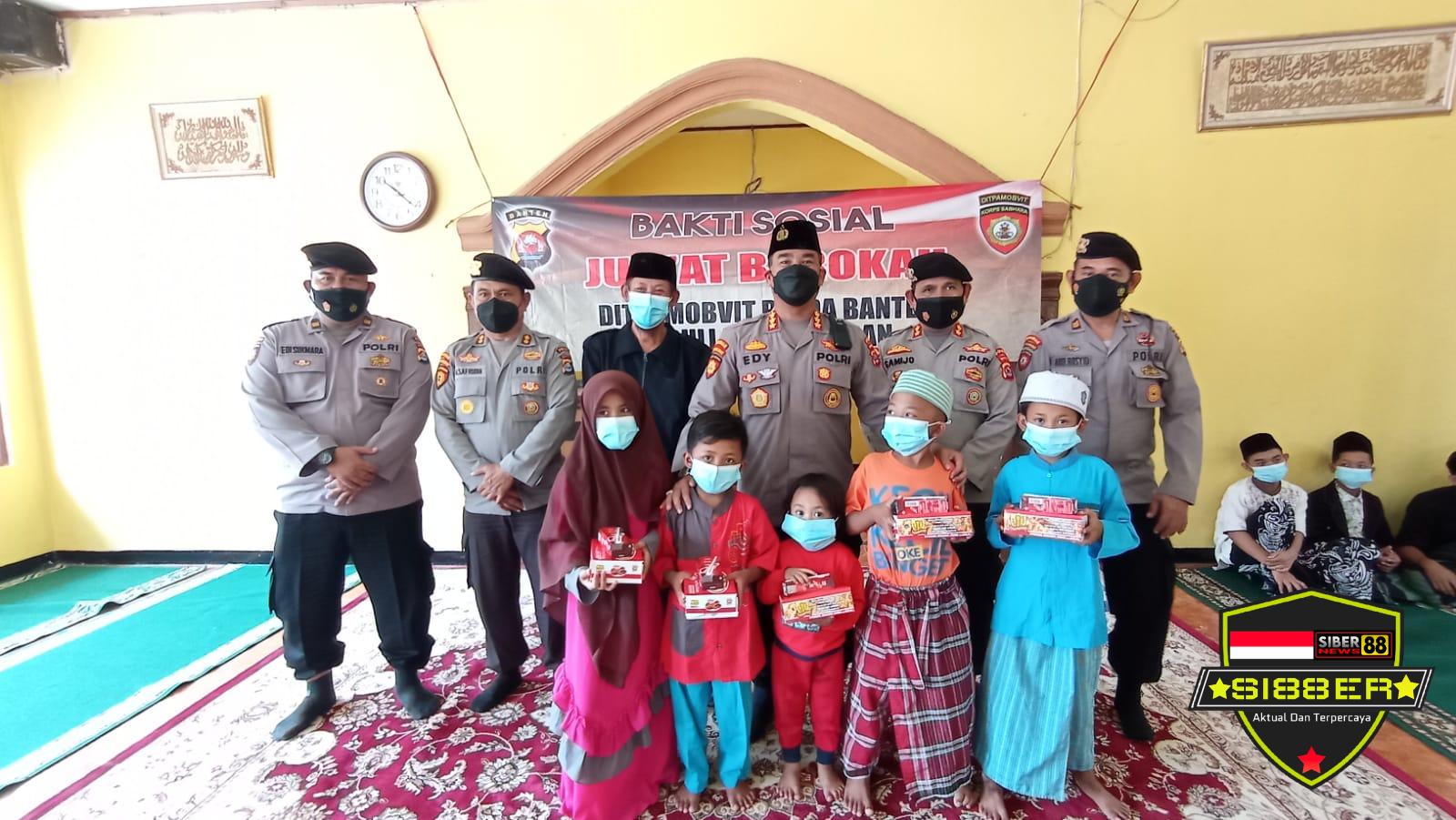 Serang Banten, SIBER88.CO.ID_ Implementasikan program Pendekar Banten point 11, Warung Jum’at Barokah Ditpamobvit Polda Banten bagikan santunan ke Yayasan Anak Yatim Piatu di yayasan Baiturrahman Kasemen, Kec. Kasemen, Kota Serang, Banten, Jumat (01/10/2021).