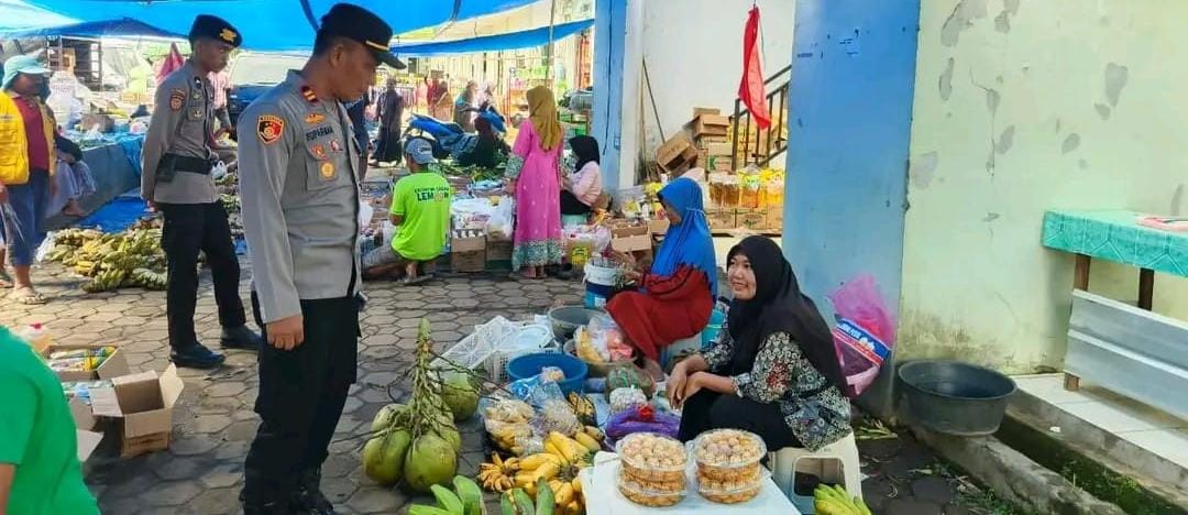 Kehadiran aparat kepolisian di tengah aktivitas pasar bertujuan untuk memberikan rasa aman dan nyaman bagi para pedagang maupun masyarakat yang berbelanja.