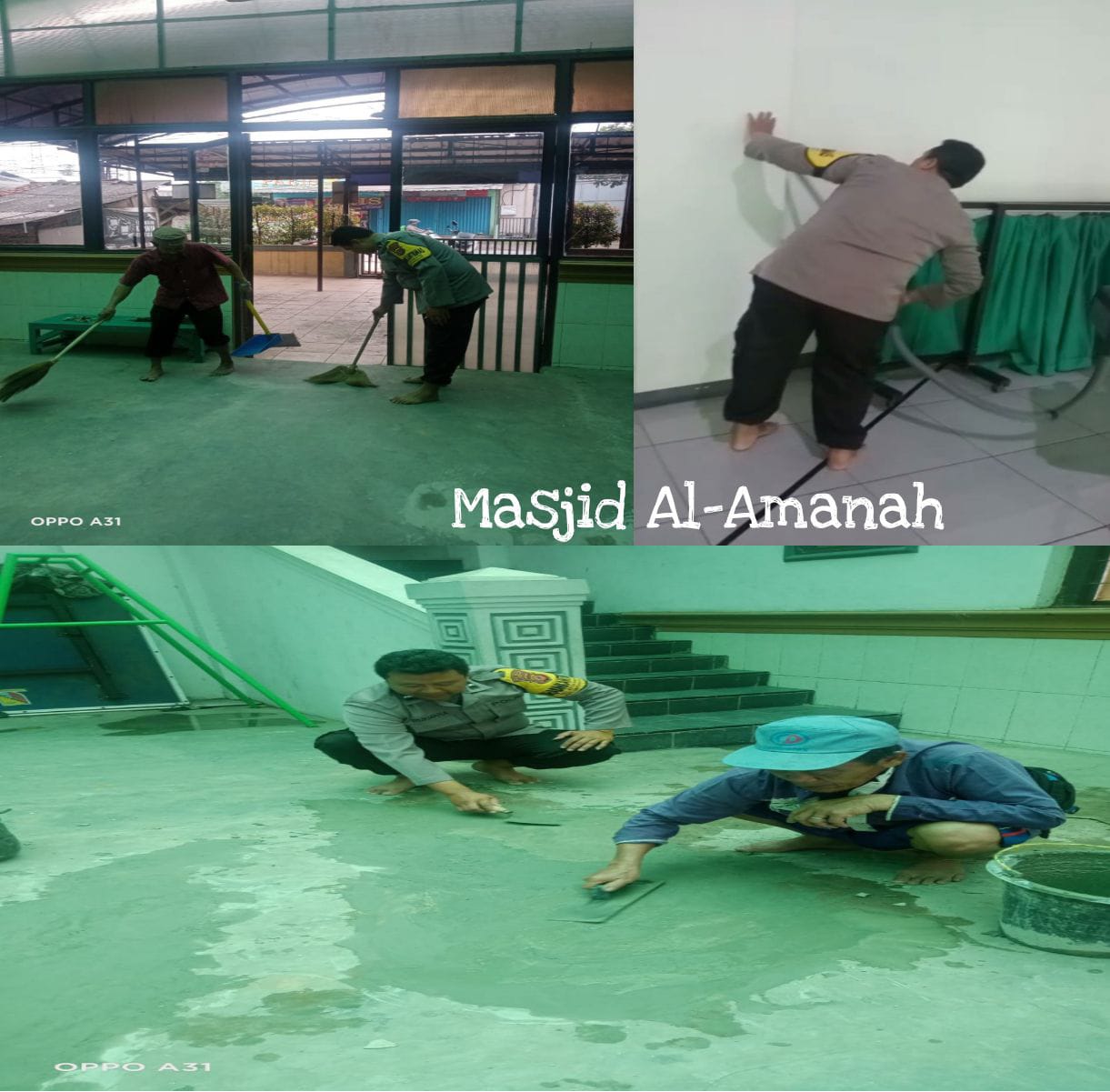 Bandung Jabar, SIBER88.CO.ID_Bhabinkamtibmas Polsek Dayeuhkolot melaksanakan kegiatan gotong royong ikut membantu kebersihan Masjid Al Amanah Palasari,di wilayah binaannya kelurahan pasawahan kec daulyeuhkolot, 23/03/2023 .