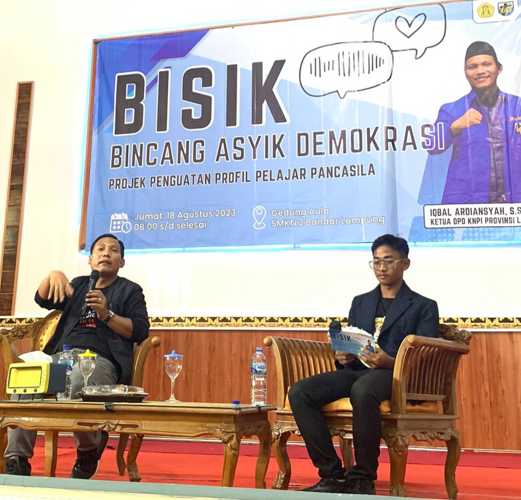 Bandar Lampung, SIBER88.CO.ID_Bincang asyik demokrasi atau bisik yang diselenggarakan oleh Sekolah Menengah Kejuruan Negeri (SMKN) 2 Bandar Lampung Jumat, (18/8/2023), pagi, berjalan dengan sukses dengan tema project penguatan profil pelajar pancasila.