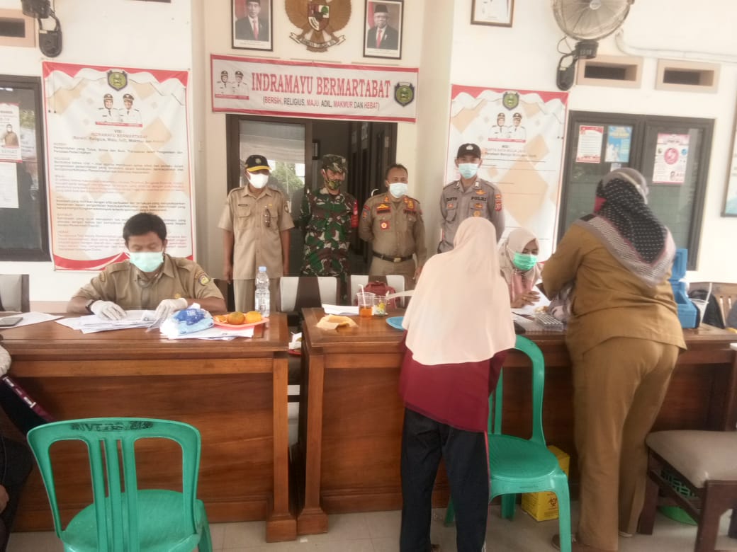 Bripka Tanto anggota Polsek Sliyeg Polres Indramayu yang juga sebagai Bhabinkamtibmas desa Mekargading-Gadingan bersama forkopimcam Sliyeg memonitoring kegiatan percepatan vaksinasi.