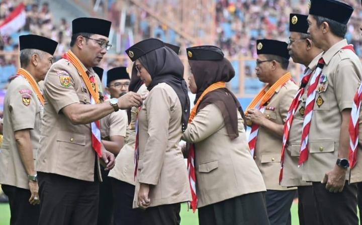 Penyematan lencana dan penyerahan piagam diberikan langsung oleh Gubernur Jawa Barat, Ridwan Kamil selaku Ketua Majelis Pembimbing Daerah (Mabida) Gerakan Pramuka Jawa Barat didampingi Ketua Kwartir Daerah (Kwarda) Gerakan Pramuka Jawa Barat, Atalia Praratya.