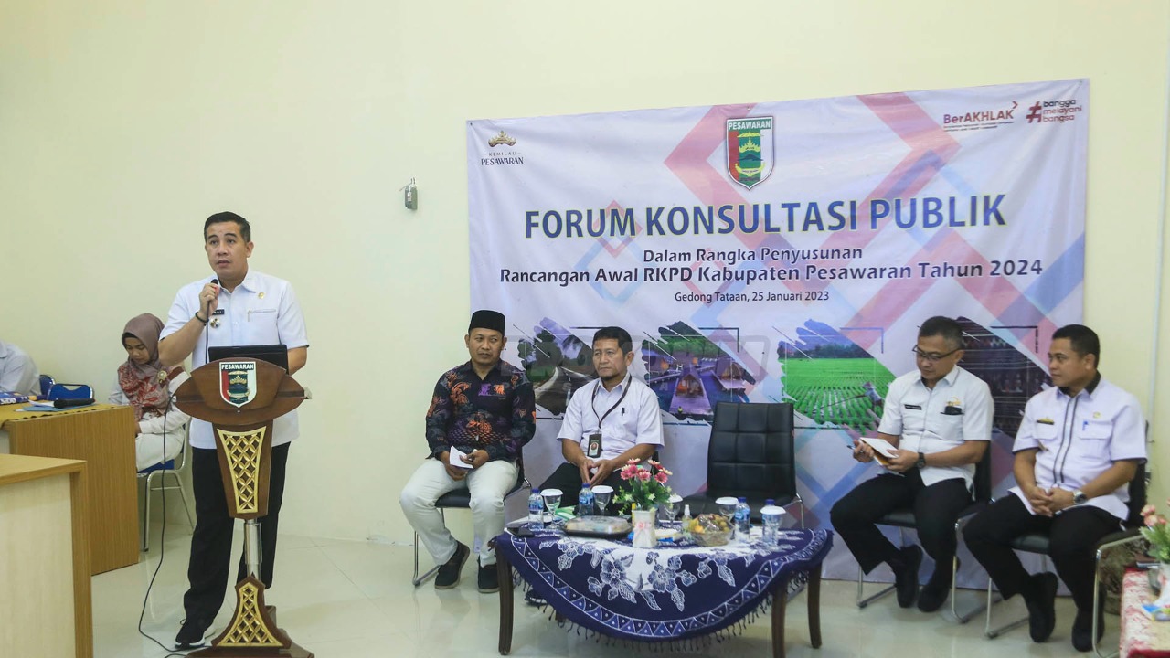 Pesawaran, SIBER88.CO.ID_ Bupati Pesawaran H. Dendi Ramadhona K,ST.M.Tr.I.P. hadiri rangkaian acara Konsultasi Publik Rancangan Awal RKPD Kabupaten Pesawaran Tahun 2024 yang berlangsung di Ruang Pesawaran One Center (Rabu, 25/1/23)