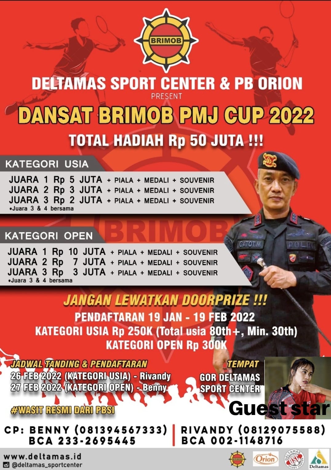 “Bagi yang berminat silahkan menghubungi saudara Benny di nomor telepon 0813 94557 333 untuk peserta kategori usia dan saudara Rivandi di nomor telepon 0812 9075 588 untuk kategori open,” woro woro nya.