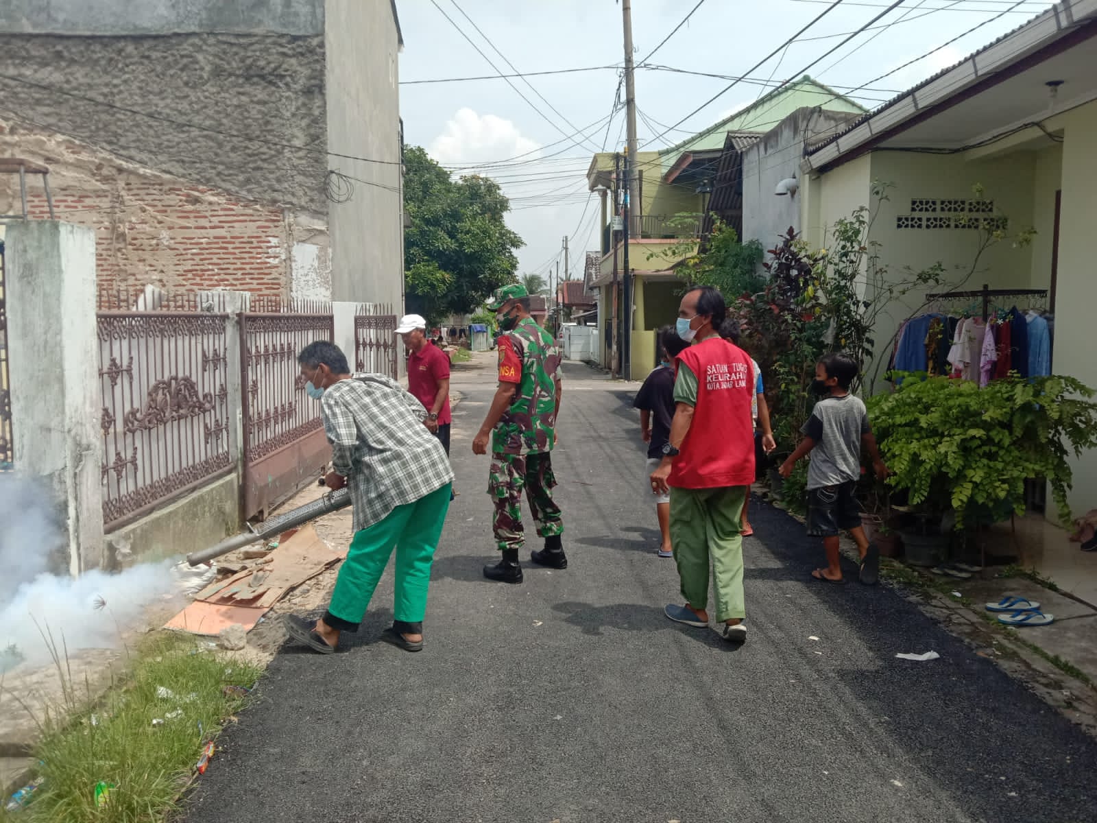 “Penyemprotan Fogging ini untuk mencegah merebaknya penyakit Demam berdarah (DBD) dan Malaria di wilayah binaanya,” kata Babinsa Serka Usmawan.