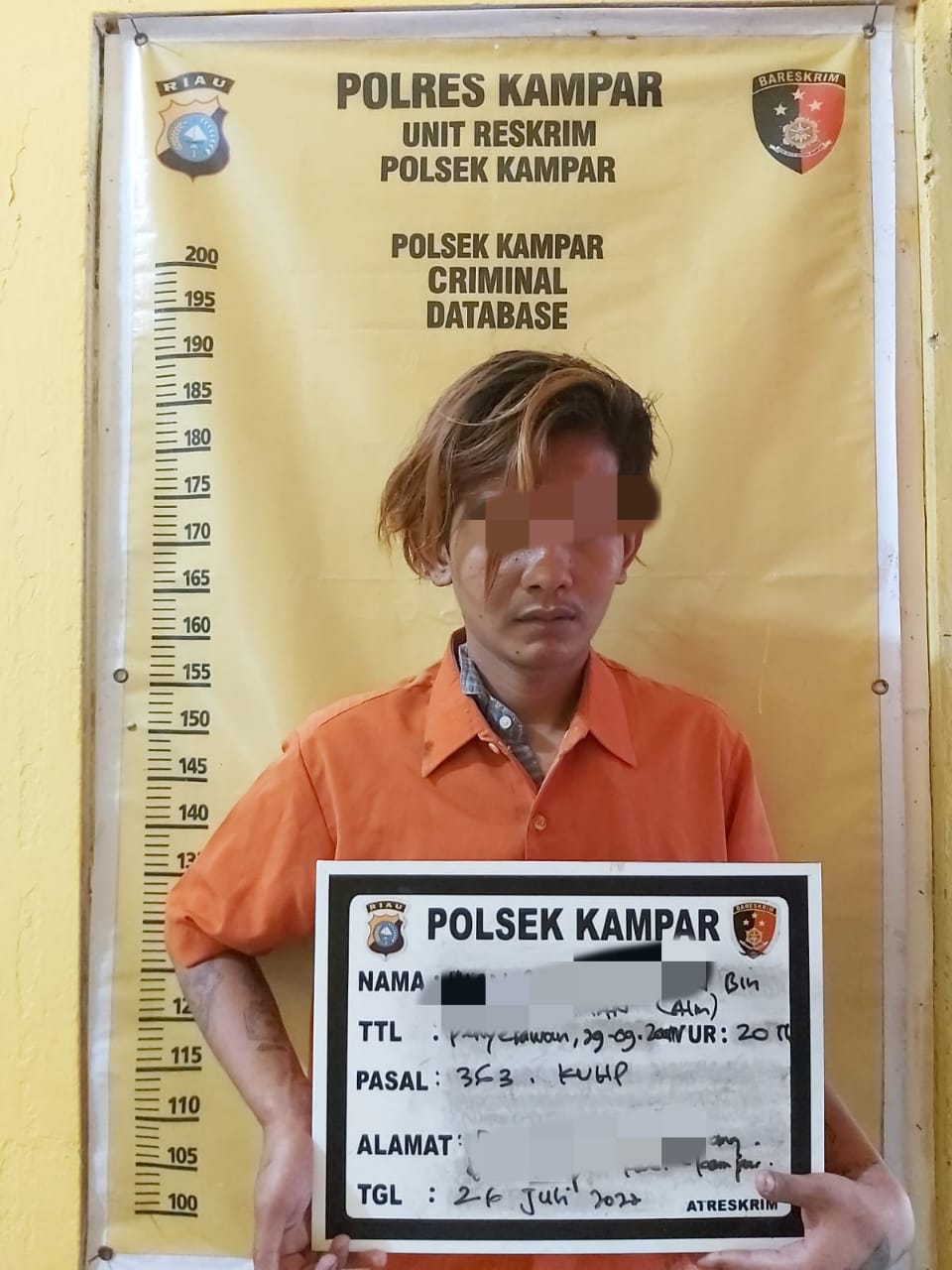 Kejadian ini berawal Minggu tanggal 24 Juli 2022 Sekitar jam 09.30 WIB unit Reskrim Polsek Kampar menerima Laporan dugaan tindak Pidana pencurian sepeda motor milik korban
