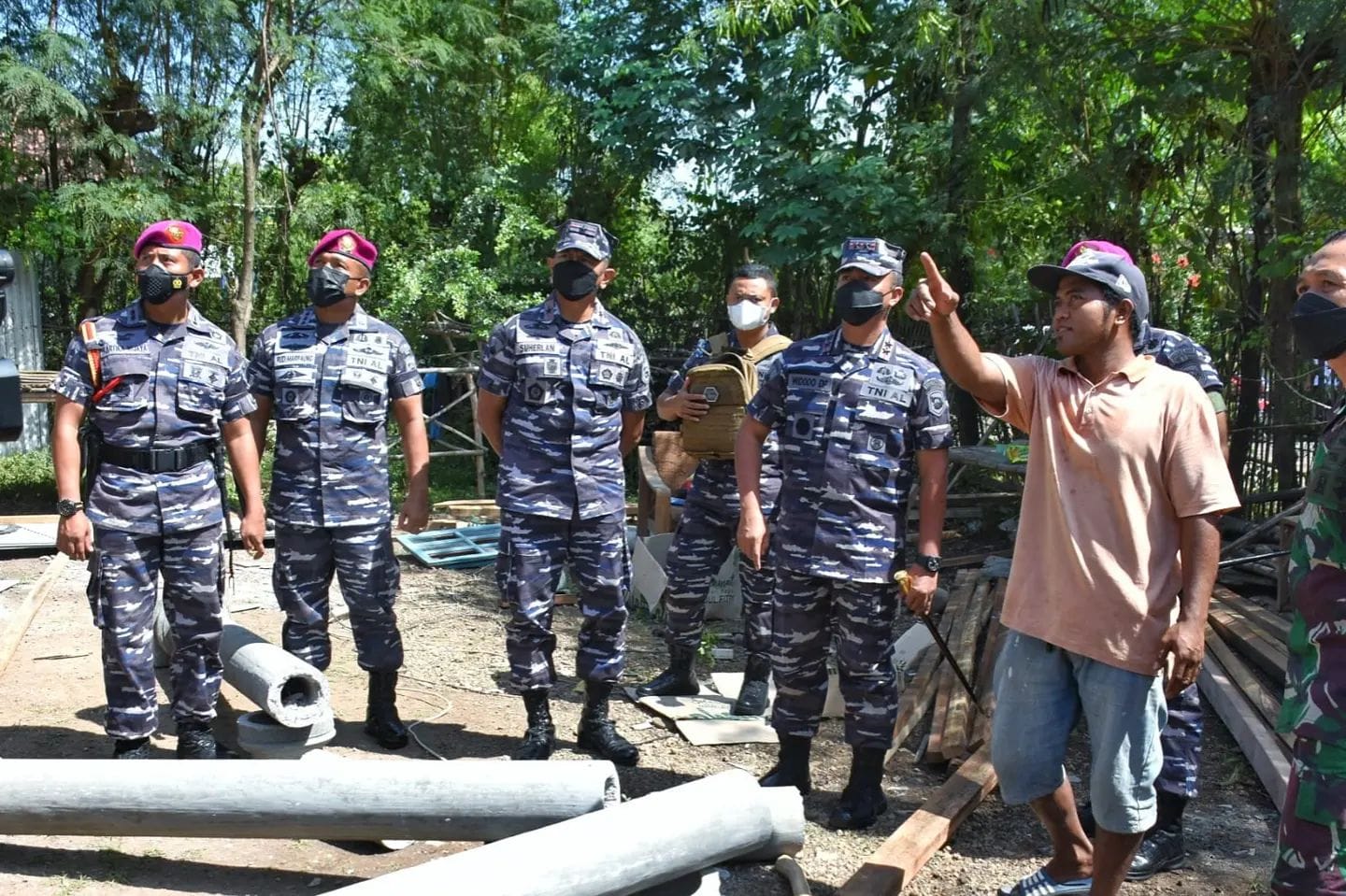 Pasuruan Jatim, SIBER88.CO.ID_Dispen Kormar Pasuruan Komandan Korps (Dankormar) Mayor Jenderal TNI (Mar) Widodo Dwi Purwanto di dampingi Komandan Pasmar 1 Brigjen TNI (Mar) Suherlan, Koorsahli Dankormar, Dankolatmar, Danlamar Surabaya, Danbrigif 2 Marinir meninjau secara langsung perbaikan rumah dampak pecahan mortir latihan yang dilaksanakan secara gotong royong antara Prajurit Marinir dan Warga Desa Balung Anyar Kec. Lekok Kab. Pasuruan Jawa Timur. Jumat (22/04/2022)