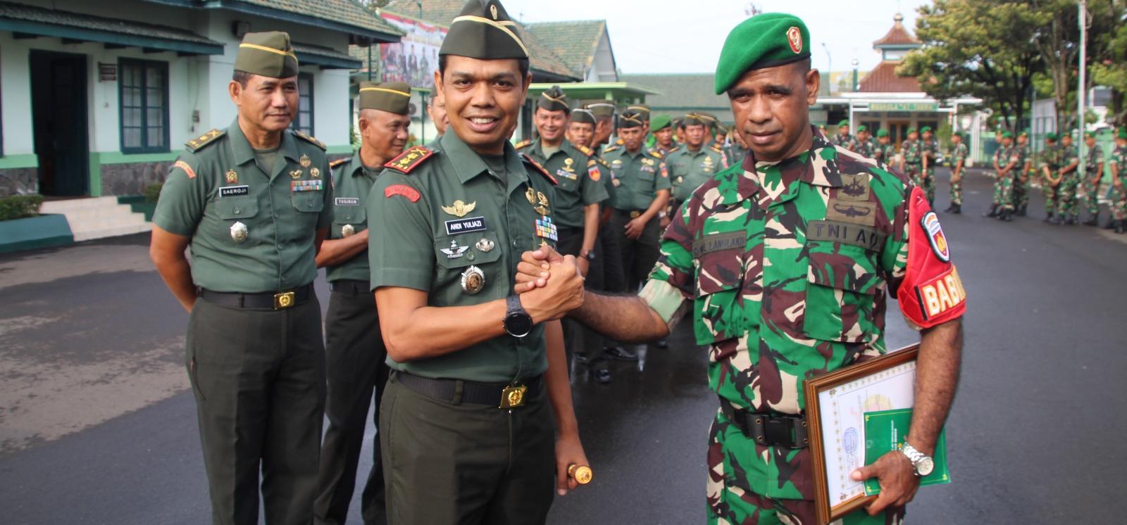 Cilacap Jateng, SIBER88.CO.ID_Letkol Inf Andi Yuliazi, Komandan Kodim 0703/Cilacap memberikan piagam penghargaan kepada Serda Ronal Langlaku bertempat di halaman Makodim jalan Jenderal Sudirman D1 Cilacap,Senin(29/01/2024).