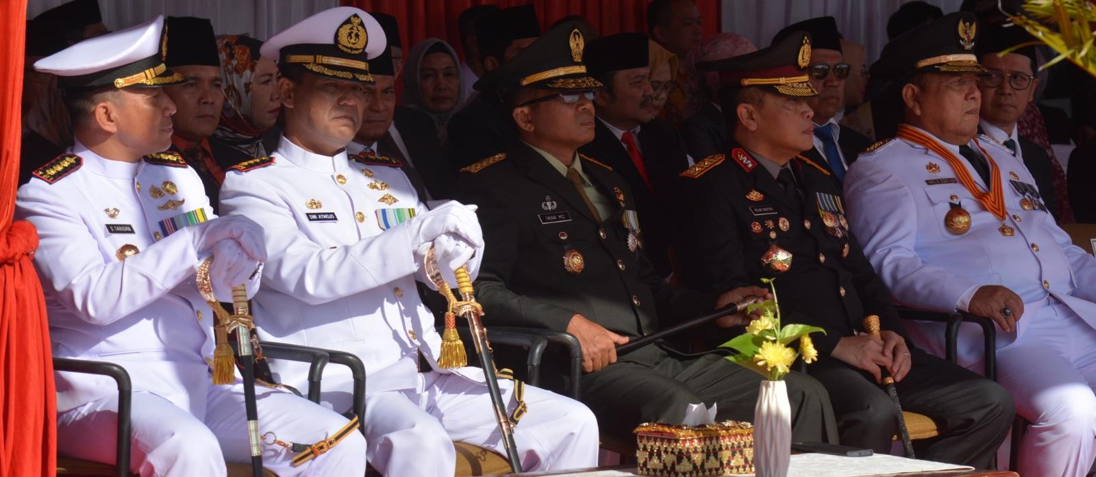 Lampung, SIBER88.CO.ID_Komandan Korem 043/Gatam Brigjen TNI Iwan Ma’ruf Zainudin,didampingi Ketua Persit Kartika Chandra Kirana Koorcab Rem 043 PD II/Swj Ny Ratna Iwan Ma’ruf Zainudin, menghadiri upacara memperingati hari jadi yang ke-60 Provinsi Lampung tahun 2024.