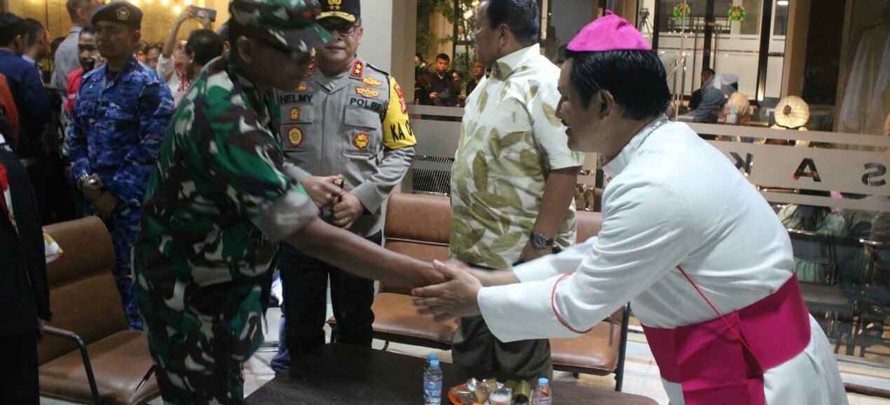Lampung, SIBER88.CO.ID_Komandan Korem 043/Gatam,Gubernur dan Kapolda Lampung pada Minggu malam (24/12/2023)meninjau pelaksanaan malam misa natal yang ada di Bandar Lampung.