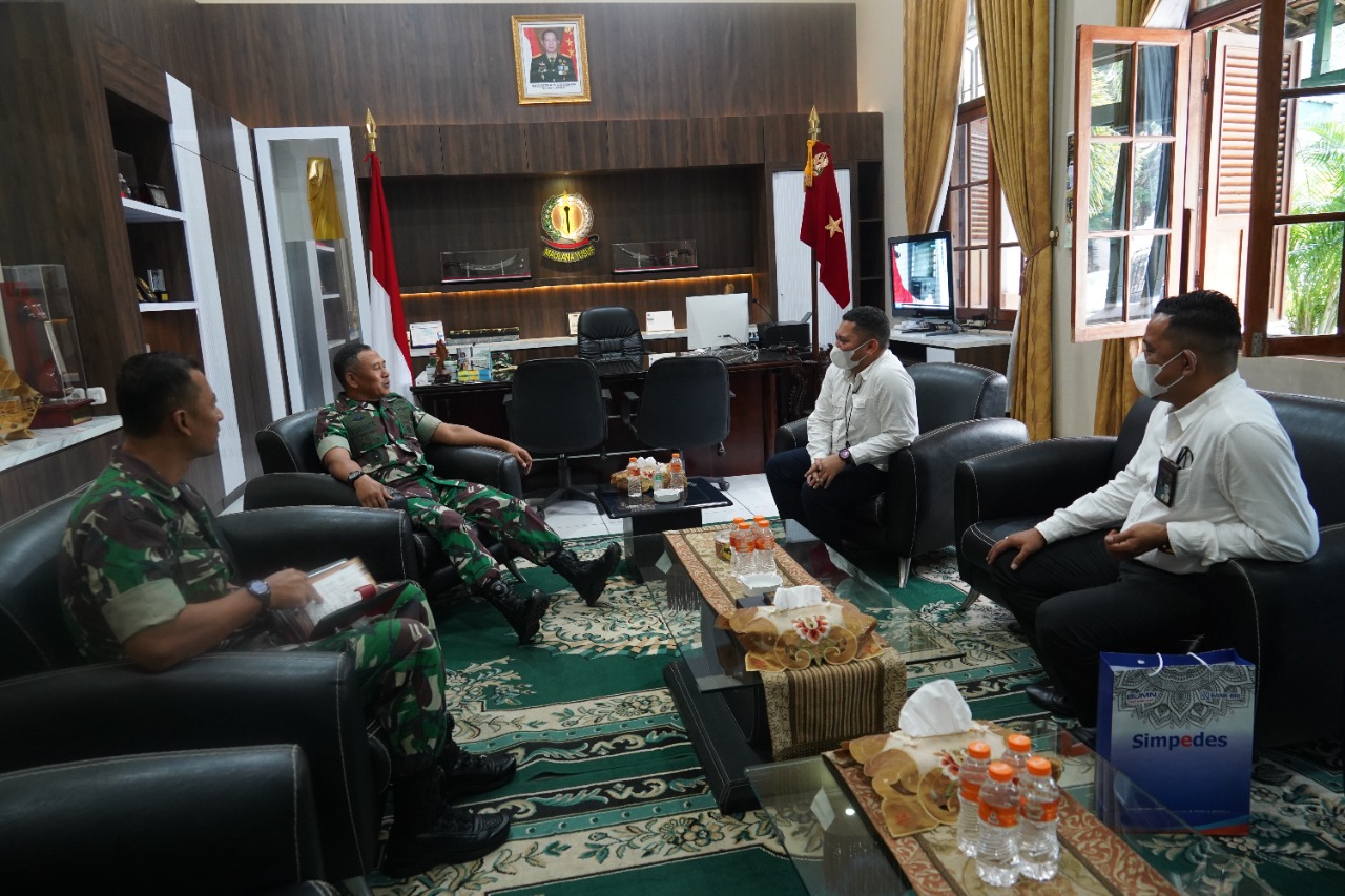 Serang Banten, SIBER88.CO.ID_Danrem 064/MY Brigjen TNI Yunianto, S.Sos.,M.M didampingi Kasi Pers Korem 064/MY Kolonel Caj Arif Hidayat , menerima kunjungan Kepala Bank BRI Cabang Serang. Bertempat di Ruang Kerja. Senin (6/12/2021).