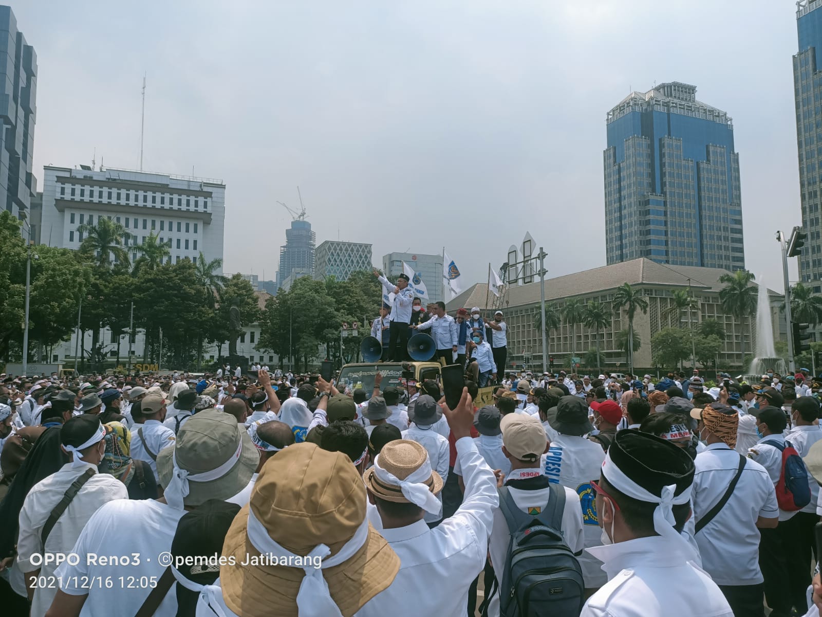 Mereka menuntut revisi peraturan presiden (perpres)no 104 tahun 2021 tentang RAPBN tahun anggaran 2022 khususnya pasal 5 ayat(4)tentang penggunaan anggaran dana desa.