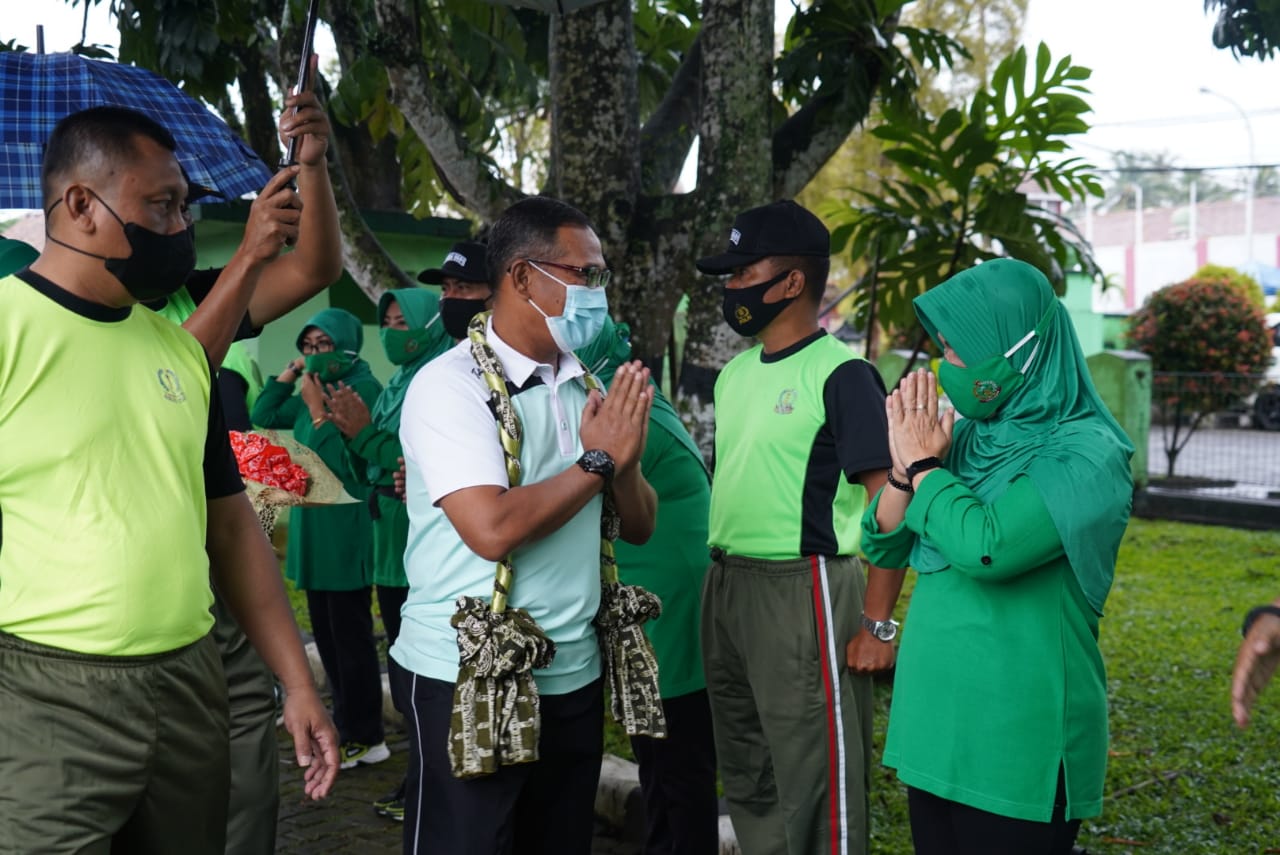 Kedatangan orang nomor satu di Korem 064/MY ini langsung di sambut oleh Dandim 0601/MY Letkol Kav Dedi Setiadi beserta perwira Staf dan Istri