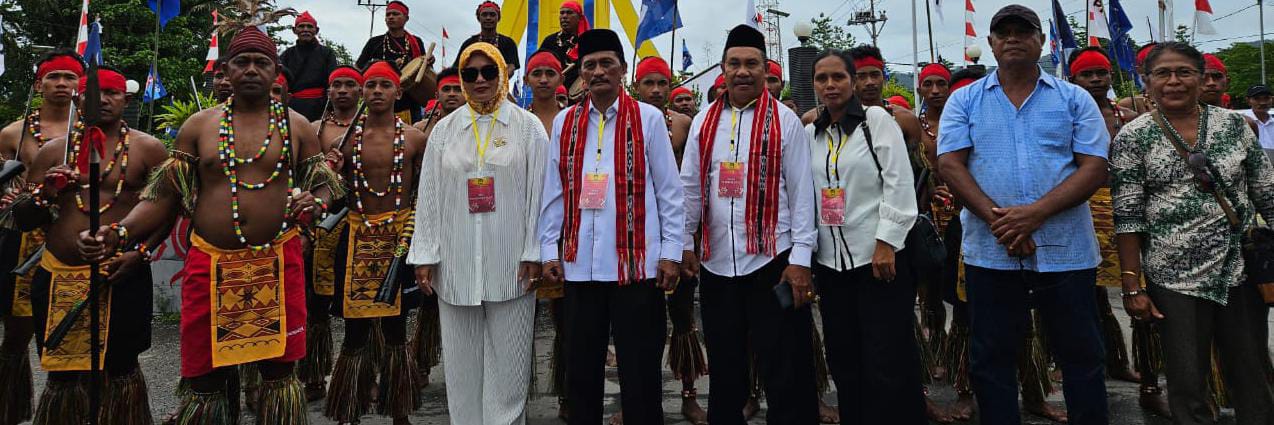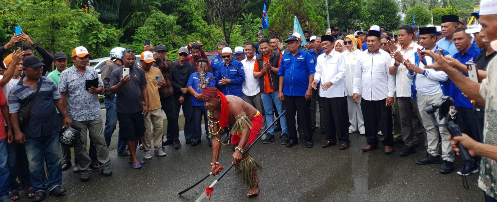 Paslon AMANUSA tiba di kantor KPU dengan diiringi tarian tradisional Cakalele dan Hadrat, menunjukkan semangat dan antusiasme para pendukung.