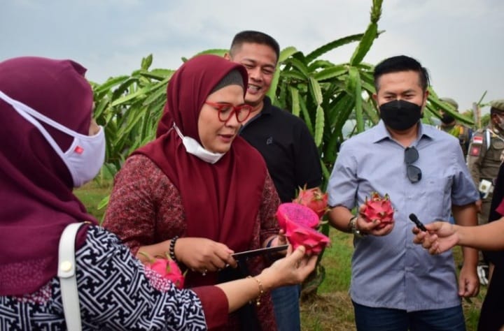 Setelah menikmati buah naga, Bupati Indramayu Nina Agustina menyampaikan bahwa tanah yang subur di Indramayu ini selain banyak tumbuh pohon mangga tetapi juga bisa ditanami buah naga yang ternyata rasanya manis dan tidak kalah dengan daerah lain.
