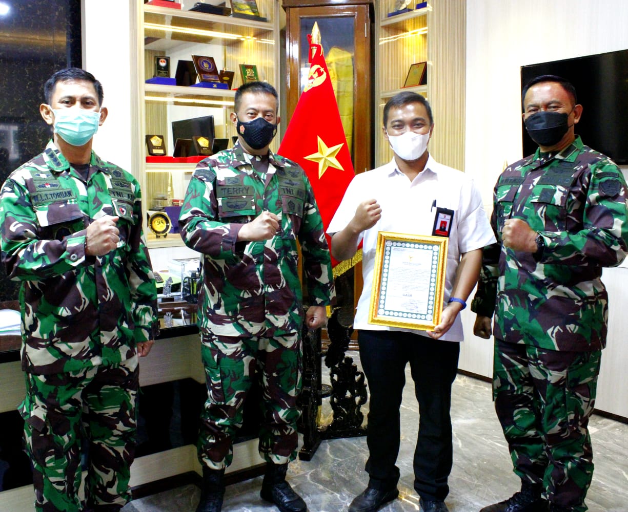 Bandung Jabar, SIBER88.CO.ID_Kepala Dinas Penelitian dan Pengembangan TNI AD (Kadislitbangad) Brigjen TNI Terry Tresna Purnama, S.I.Kom., M.M., menyerahkan Sertifikat Hasil Uji coba Prototipe Alat Pembuka Pad Shoe Tank Leopard dan Sejenisnya dengan Sistem Hidrolik Pneumatik hasil Litbanghan Puspalad di Markas Dinas Penelitian dan Pengembangan TNI AD, Rabu (10/11/2021).
