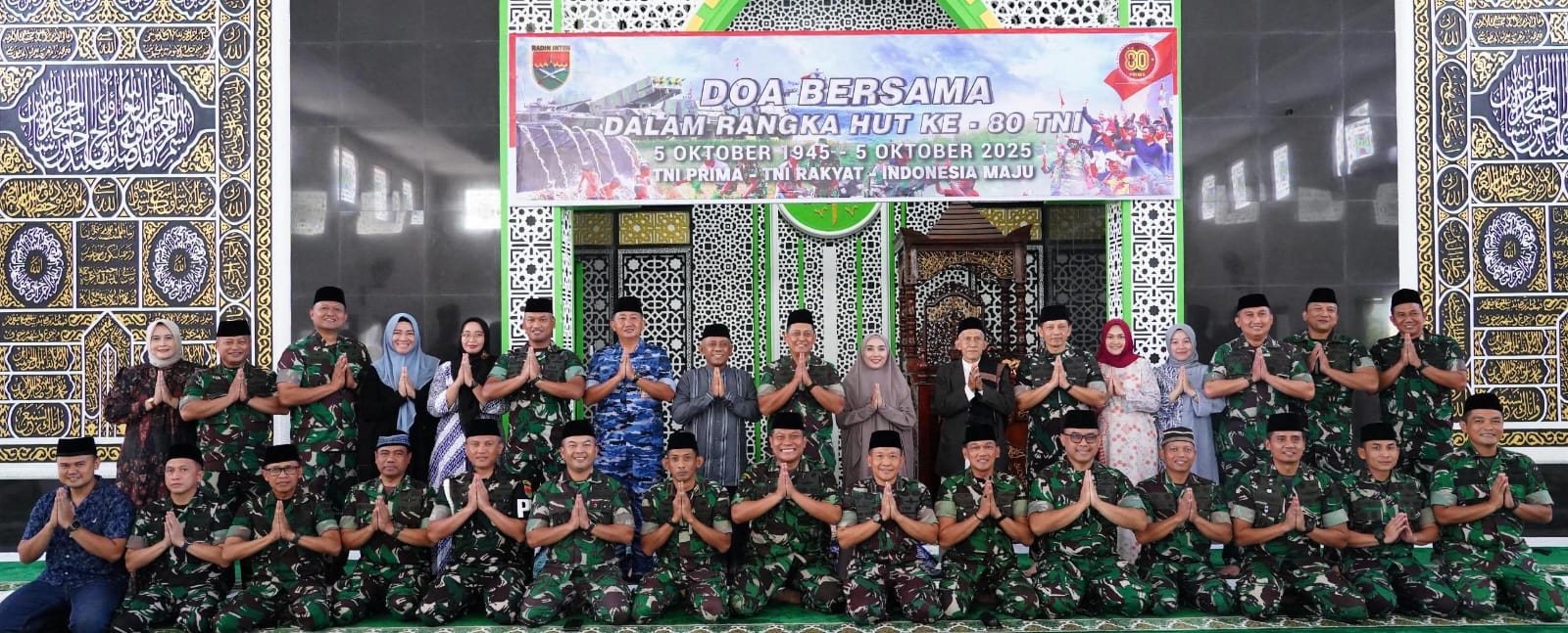 Lampung, SIBER88.CO.ID_Dalam rangka memperingati Hari Ulang Tahun (HUT) ke-80 Tentara Nasional Indonesia (TNI), Komando Daerah Militer XXI/Radin Inten (Kodam XXI/RI) menggelar doa bersama di Masjid Al-Ikhlas Makodam XXI/RI, Penengahan Bandar Lampung, Sabtu (4/10/2025).