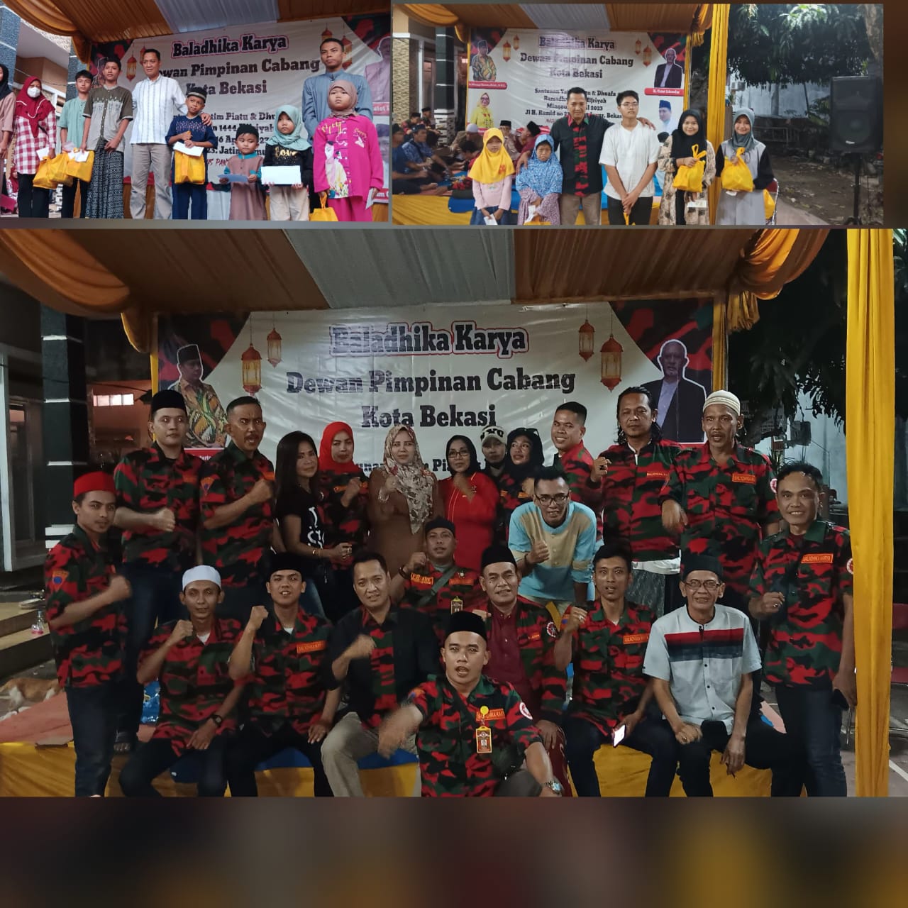 Bekasi Jabar, SIBER88.CO.ID_Baladhika Karya Dewan Pimpinan Cabang (DPC) Kota Bekasi melaksanakan Santunan yatim piatu dan Dhuafa Ramadhan 1444 H/2023.