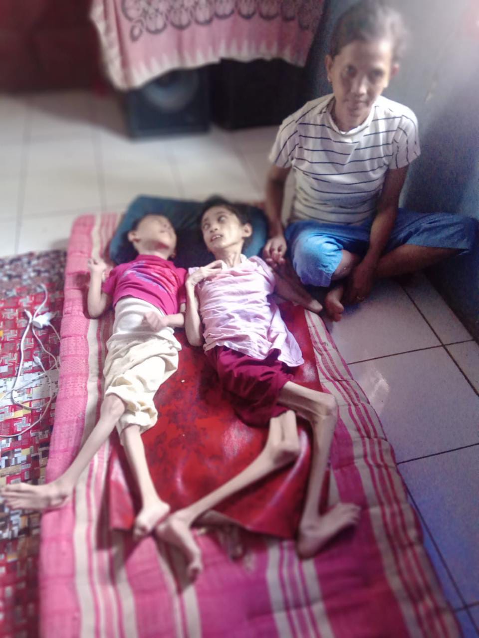 Diketahui Menurut warga setempat kedua anak ini, Sejak lahir tidak dapat beraktifitas di dunia luar anak sebayanya akibat lumpuh layu, mereka bertahan hidup dengan bantuan keluarga dan tetangga yang ikut mengulurkan bantuan.