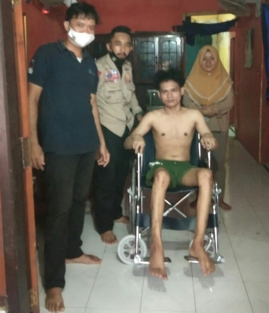 Salah satu penerima Bantuan Didi Ahmadi 23 tahun warga Desa Sukareja yang tinggal seorang diri dan mengalami kelumpuhan kakinya sejak 2014 silam mengucapkan terimakasih kepada Bupati Indramayu melalui Dinas sosial yang sudah memberikan bantuan kursi Roda semoga bermanfaat. (yayan)