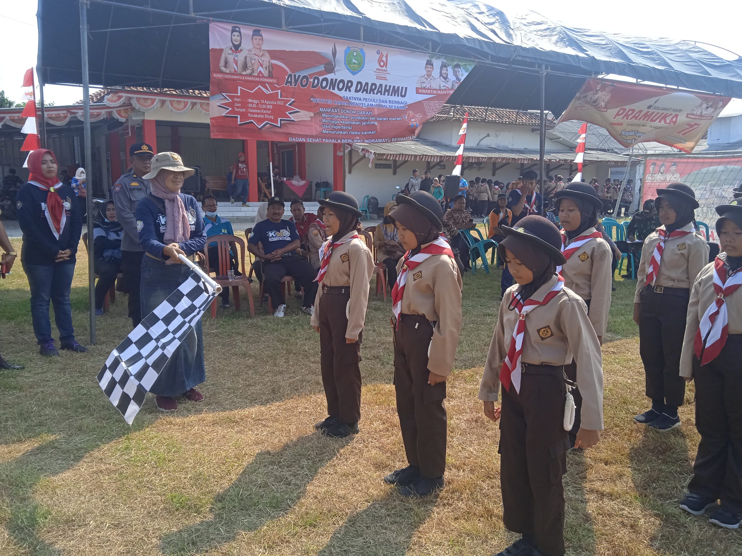 Indramayu Jabar, SIBER88.CO.ID_Lomba gerak jalan memperingati hari ulang tahun Pramuka yang ke-61 di kecamatan Sliyeg kabupaten Indramayu Jawa Barat,Kamis (11/8/2022) dibuka camat Sliyeg Endang Ismiati SSTP MSi didampingi forkopimcam, ka Kwartir dan ketua forum kepala sekolah kecamatan Sliyeg.