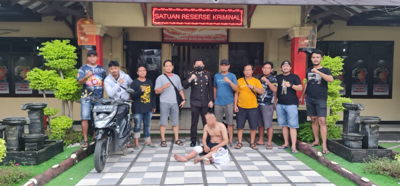 Pelaku perampokan berinisial DP (19)diketahui sebagai warga desa Leuwigede kecamatan Lohbener kabupaten Indramayu Jawa Barat tersebut tanpa perlawanan berarti diringkus Unit Resmob Satreskrim Polres Indramayu di rumahnya dengan beberapa barang buktinya.