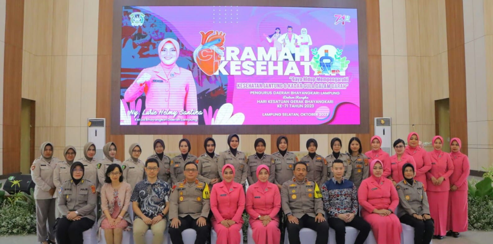 Lampung, SIBER88.CO.ID_Hari Gerak Kesatuan Bhayangkari (HKGB) ke-71, Polda Lampung menggelar acara ceramah kesehatan dengan tema gaya hidup, bertempat di gedung serba guna Presisi Polda Lampung,Minggu(22/10/2023).