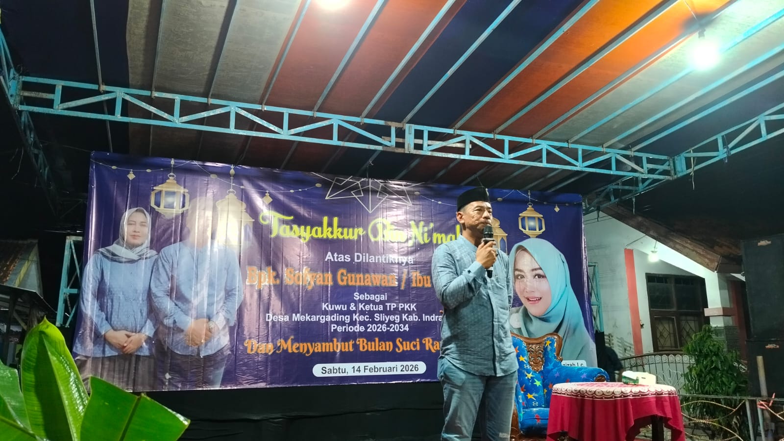 Indramayu Jawa Barat, SIBER88.CO.ID_Keluarga besar Sofyan Gunawan – Nursini menggelar tasyakkur bin ni’mah atas dilantiknya Sofyan Gunawan sebagai Kepala Desa (Kuwu) Mekargading Kecamatan Sliyeg Kabupaten Indramayu pada Sabtu malam (14/02/2026).