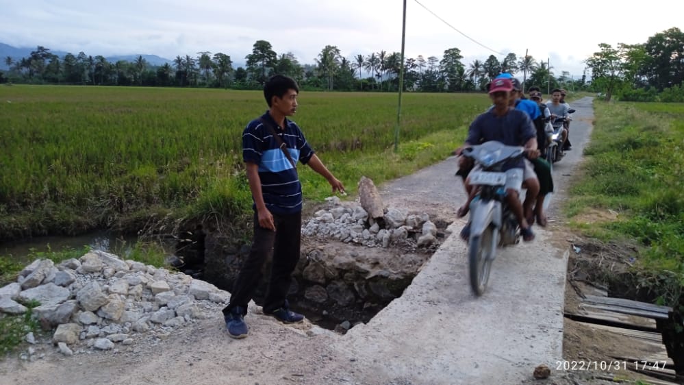 Namun, Mungkin karna keterbatasan dana atau kontruksi Bangunan yang tidak sesuai sehingga baru beberapa Minggu jembatan swadaya Masyarakat tersebut sudah patah dan hancur kembali untuk sebagian dan hanya bisa dilewati oleh kendaraan Roda dua.