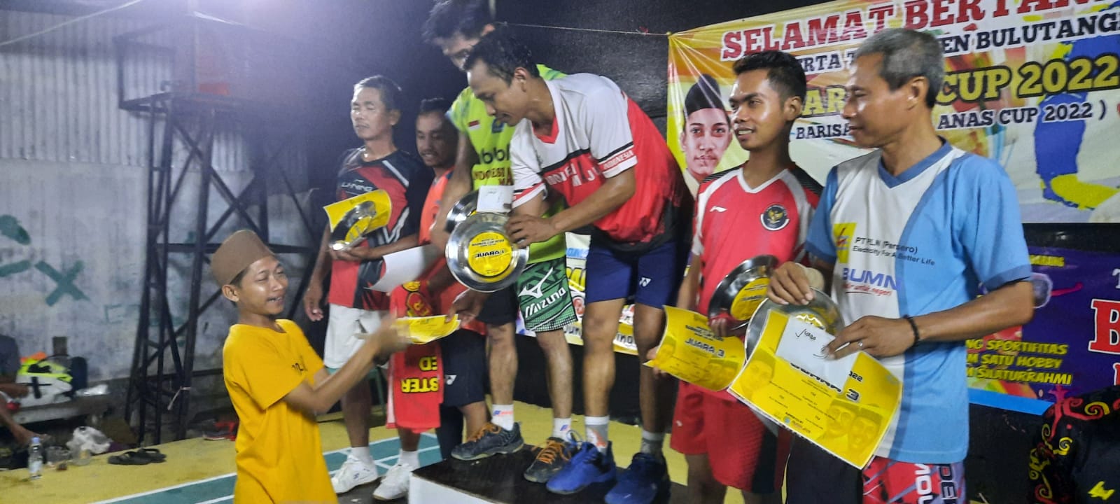 Indramayu Jabar, SIBER88.CO.ID_Grandfinal turnamen bulutangkis Barnas Cup 2022 se- daerah pemilihan(Dapil)3 berakhir pada Sabtu malam(23/7/2022)di lapangan bulutangkis desa Kongsijaya kecamatan Widasari kabupaten Indramayu Jawa Barat.