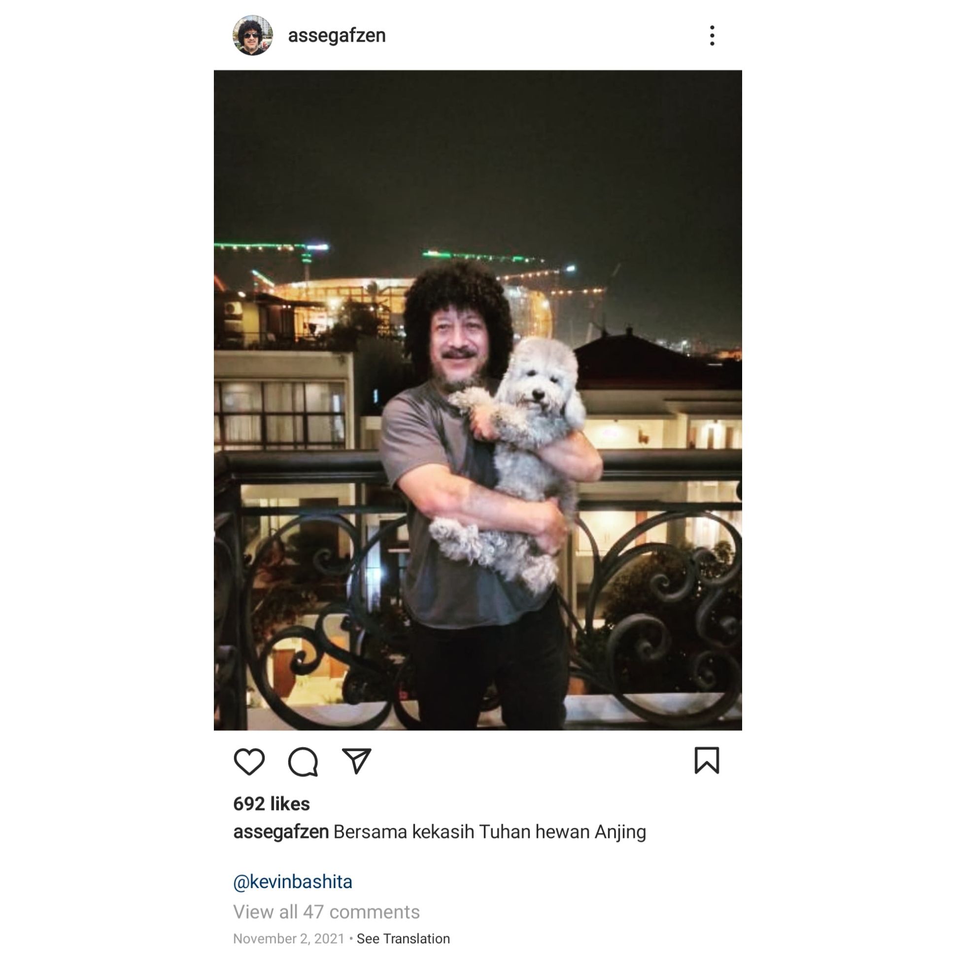 Dalam caption, Habib Kribo me mengatakan bahwa ia sedang bersama kekasih Tuhan, yaitu hewan anjing.