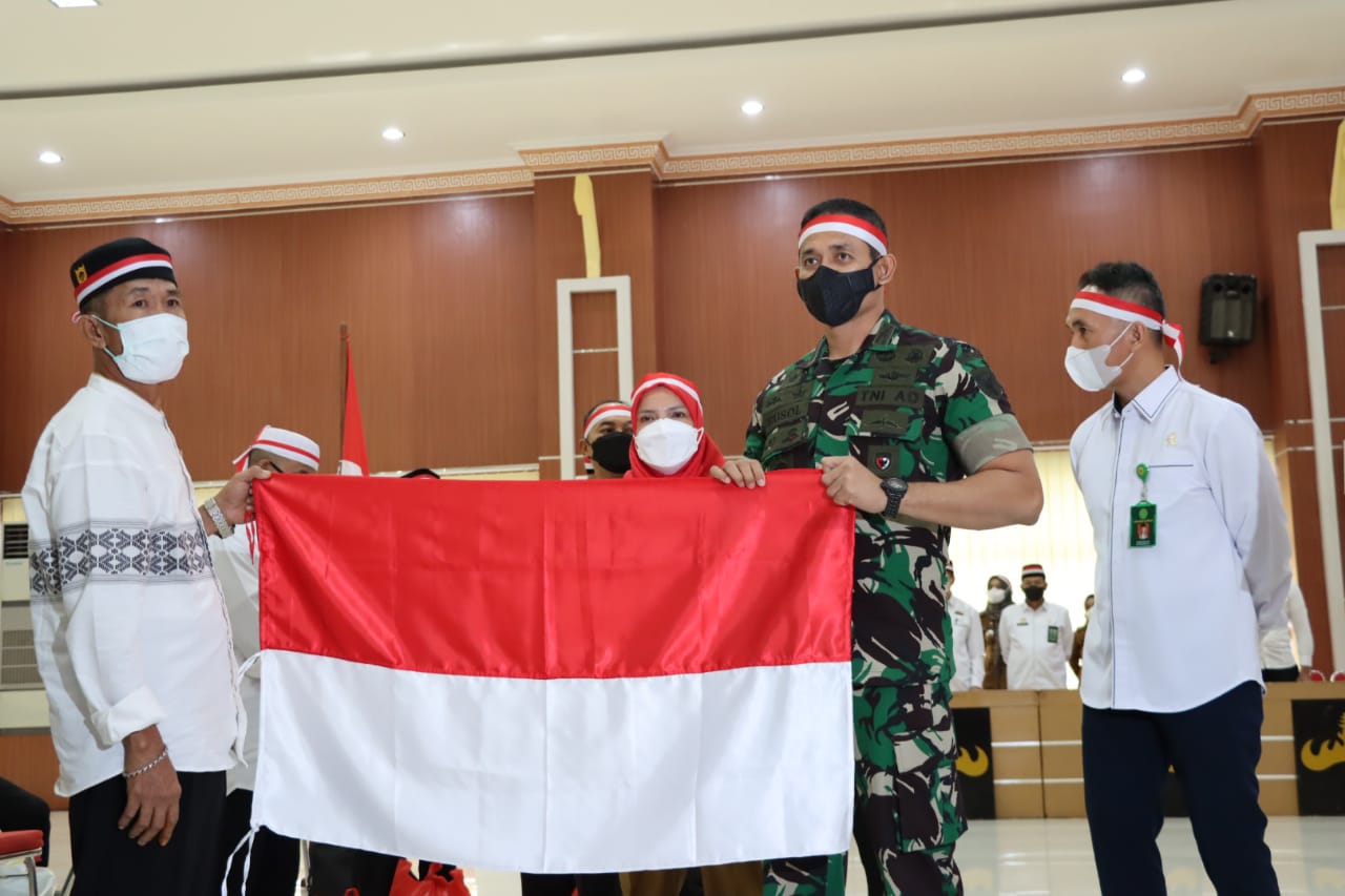Di sisi lain, Dandim 0410/KBL Kolonel Inf Faisol Izuddin bersama forkopimda lainnya juga tampak menyerahkan Bendera Merah Putih kepada seluruh jemaah Kilafatul Muslimin.