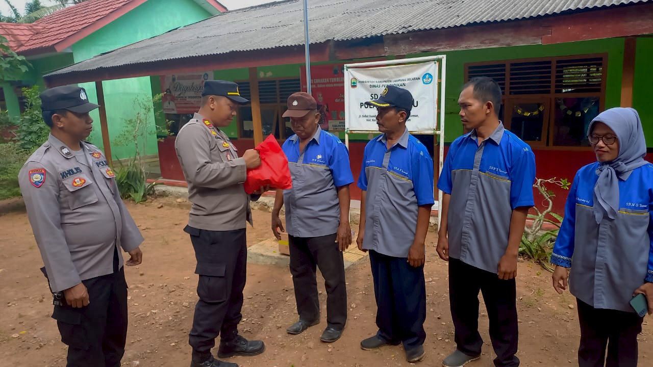 Iptu Gobel menjelaskan pihaknya dari Polsek Penengahan Polres Lampung Selatan Polda Lampung sengaja menyambangi sekolah SDN 5 Pulau Harimau ini dalam rangka hari guru nasional.