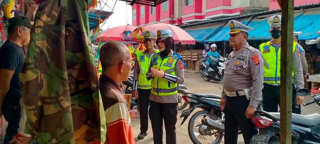 Bandar Lampung, SIBER88.CO.ID_Direktorat Lalu Lintas Polda Lampung Satgas Preemtif Ops Keselamatan Krakatau 2023 melakukan edukasi dan membagikan stiker himbauan tertib berlalu lintas kepada masyarakat di sejumlah pasar di Bandar Lampung. Jum’at (10/02/2023).