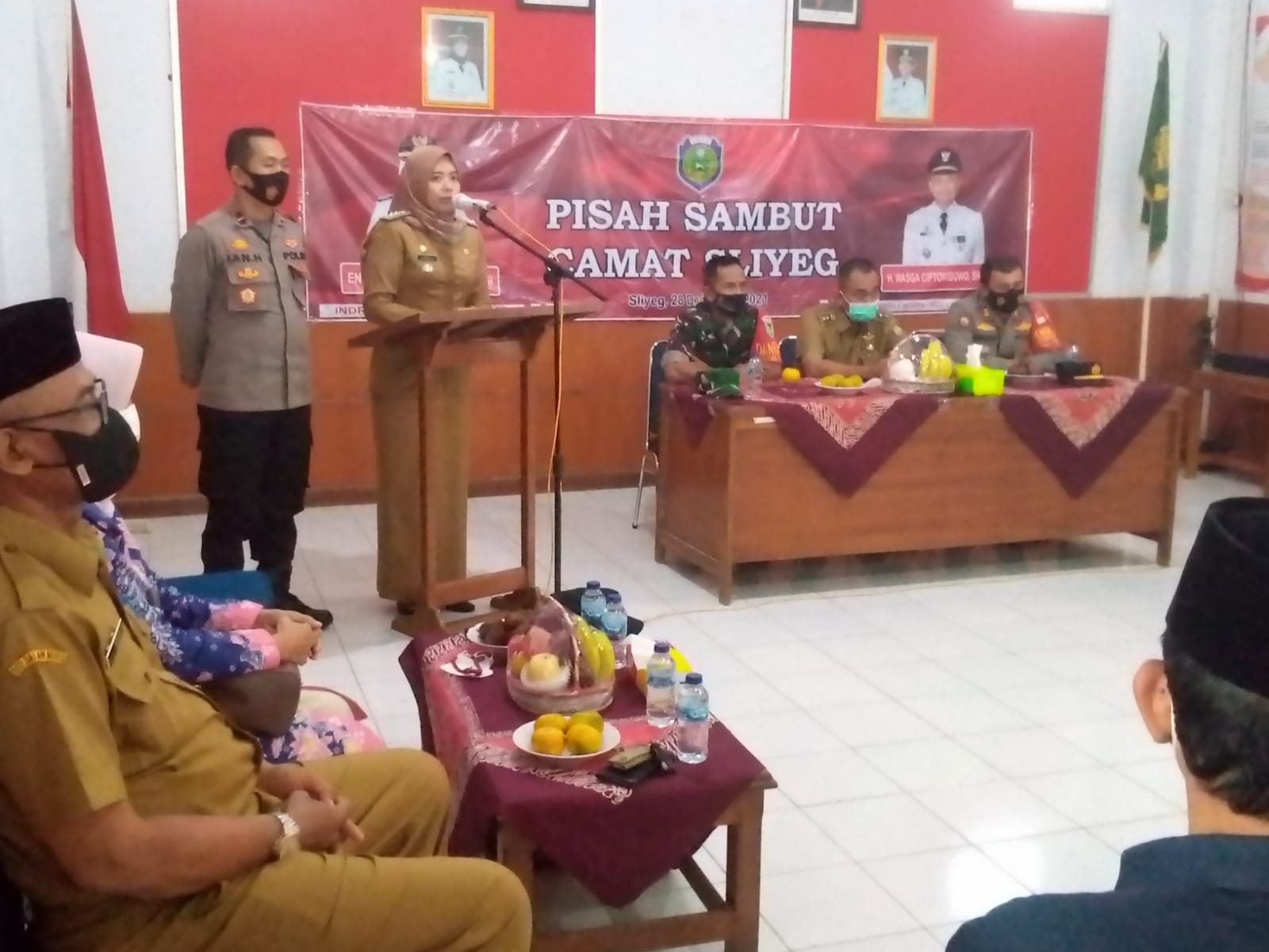 Ditempat yang sama, Camat Sliyeg yang baru Endang Ismiati mengatakan, Saya berharap seluruh elemen dapat bekerjasama demi kemajuan wilayah Kecamatan Sliyeg yang bermartabat.